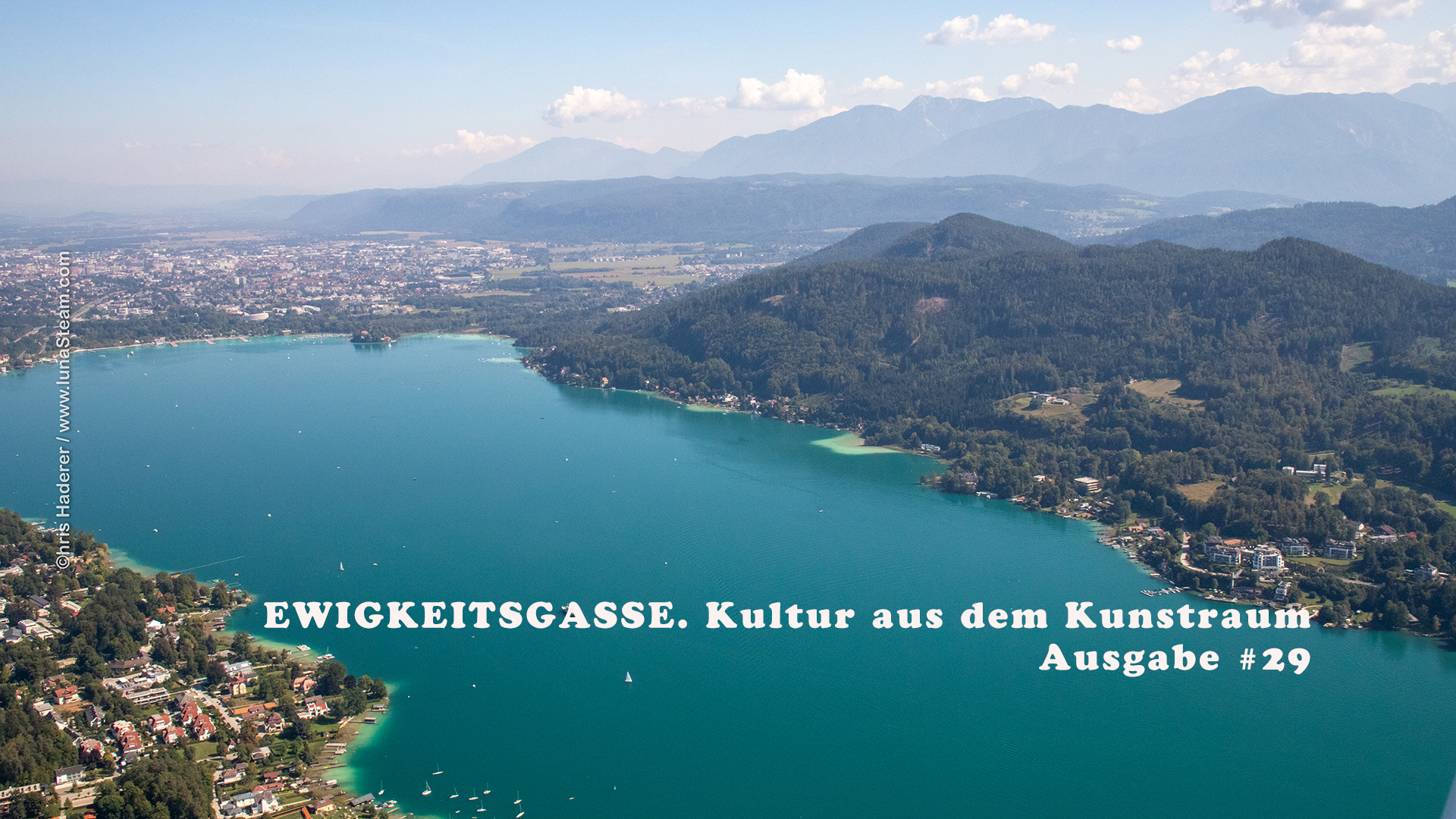 Rundflug von Klagenfurt über Feldkirchen, den Ossiacher See, die Drau-Region bis zum Wörthersee für Luftaufnahmen für die 29. Ausgabe unseres TV-Magazines EWIGKEITSGASSE. Kultur aus dem Kunstraum.